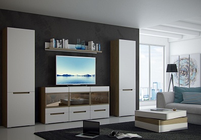 Тумба Глейс под телевизор с выдвижными ящиками Венге, Белый глянец