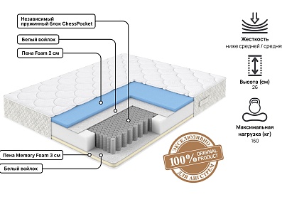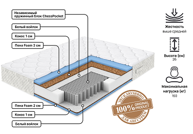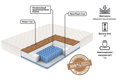 Матрас Free 200 х 200 Разная жесткость сторон с пружинным блоком