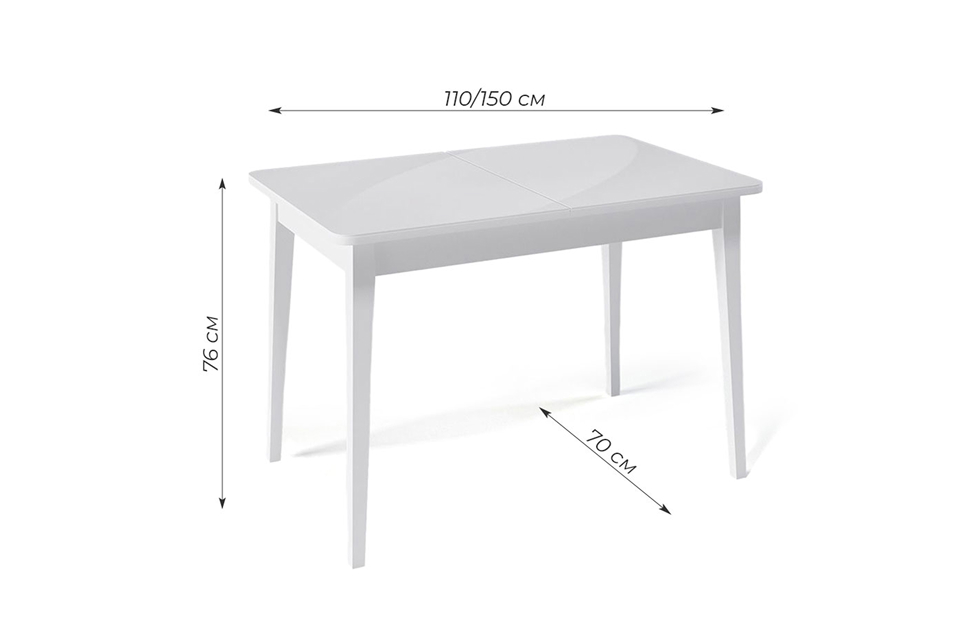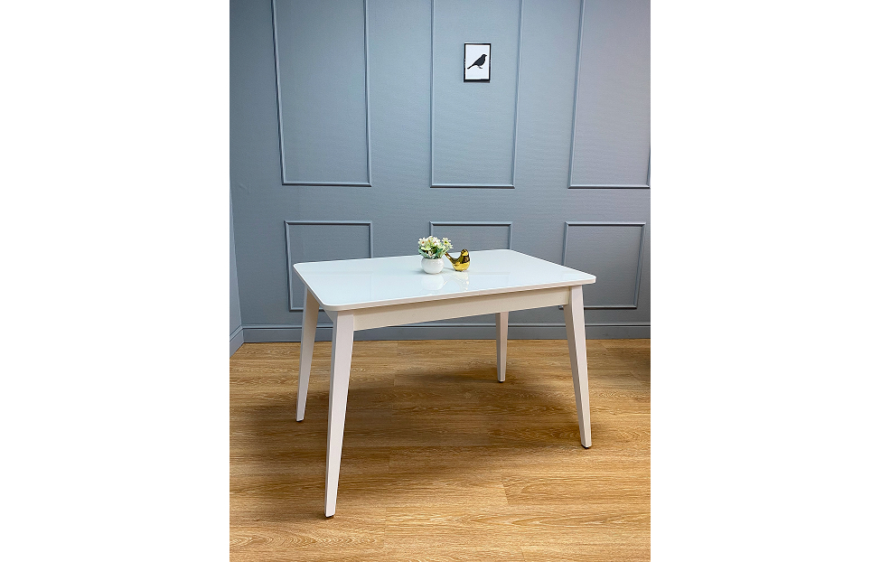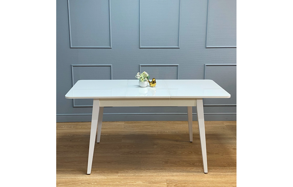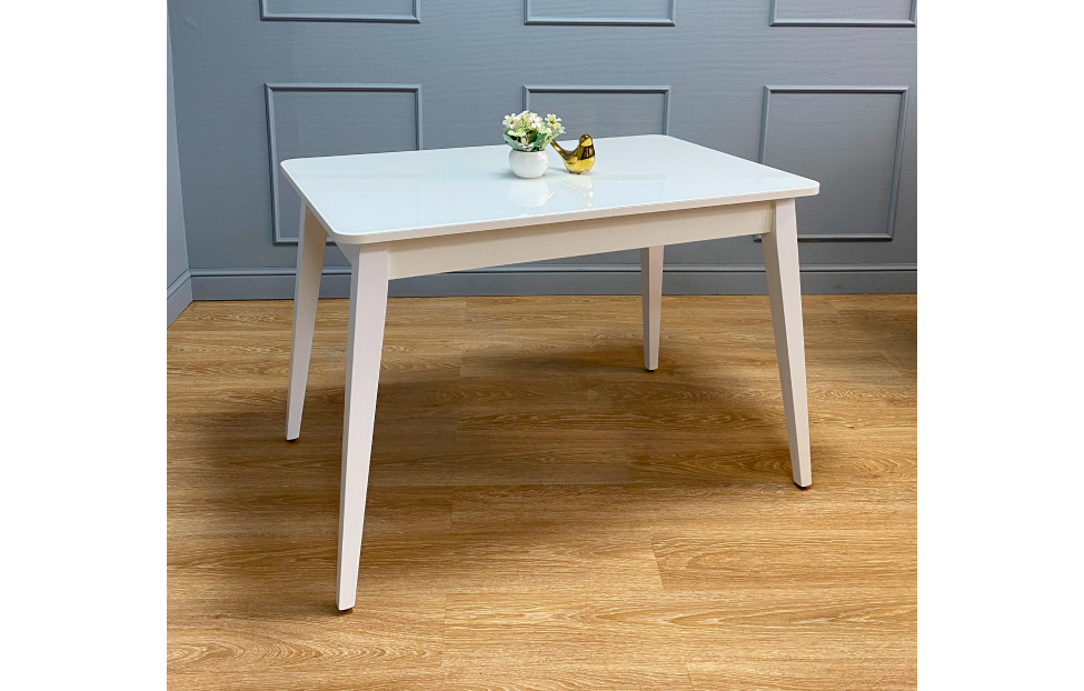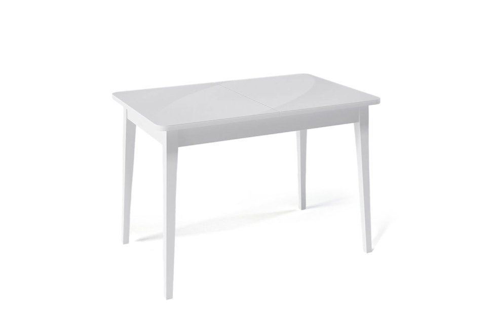 Стол обеденный Орпен квадратный раздвижной 1100М опоры белые, столешница - стекло белое глянец.
