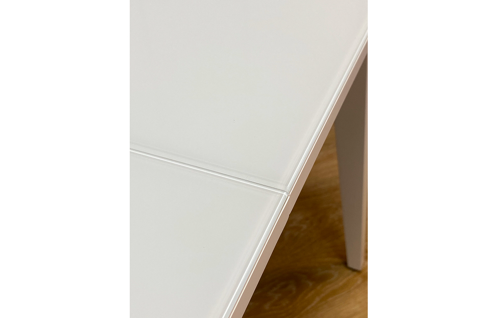 Столешница из стекла надежно защищает стол от влаги и горячего. Для данного стола применяется дорогое, просветленное стекло optiwhite которое передает чистый, яркий цвет без зеленого бутылочного оттенка. Стекло надежно крепится к подложке из ЛДСП на герметик, распределенный по всей поверхности столешницы.