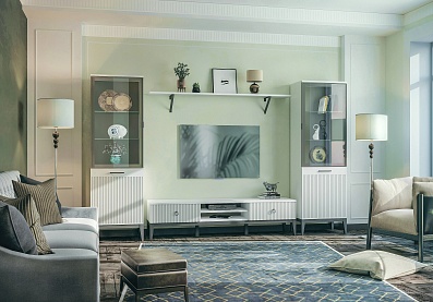 Шкаф Дольче со стеклянными полками (4 шт.) и полкой ЛДСП Кашемир серый